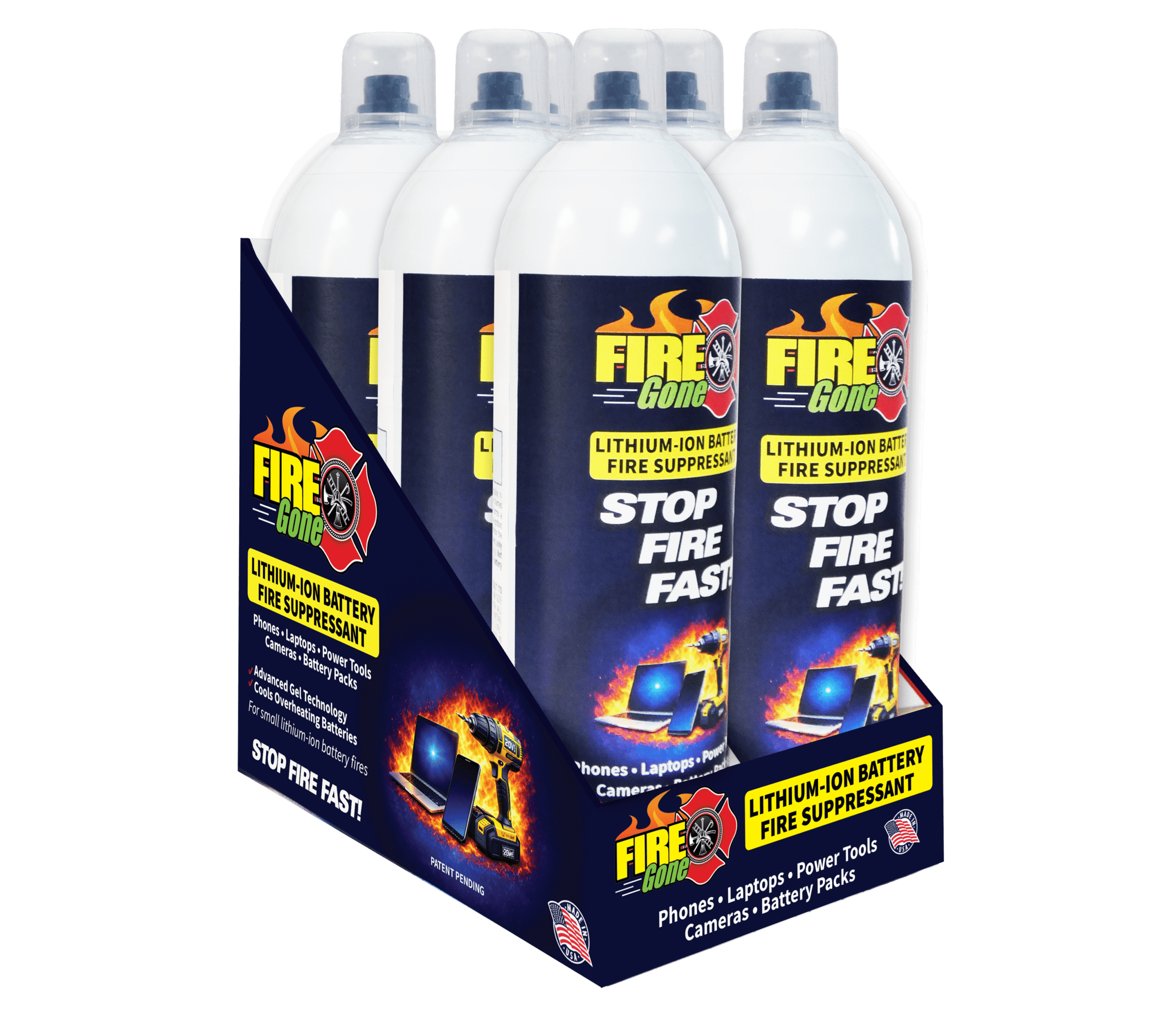 Fire Gone Lithium-Ion Fire Suppressant is engineered to combat small lithium-ion battery fires quickly and effectively. The advanced formula suppresses flames while helping cool the battery surface to reduce the risk of re-ignition. Designed for fast response, it delivers targeted discharge for home, garage, workshop, and vehicle use. Product ID: FGLFS6-7115